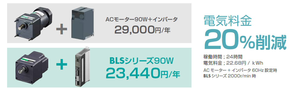 そのため、ACモーター+インバータに比べて電気代を20%削減できます。