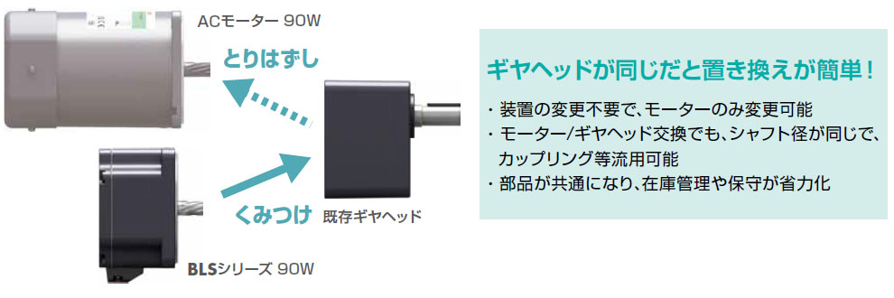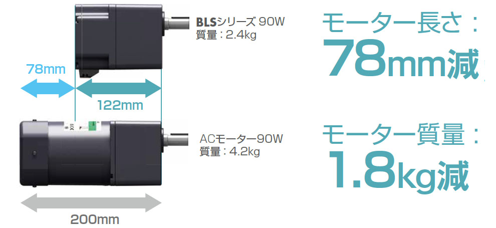 BLSシリーズは小型ACモーターからの置き換えに最適な、ACモーターのようにシンプルに使えるブラシレスモーターです。
