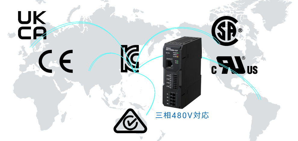 KM-PMは主要な安全規格を取得しグローバルの生産設備に後付け可能なEthernet通信対応電力量モニタです。
